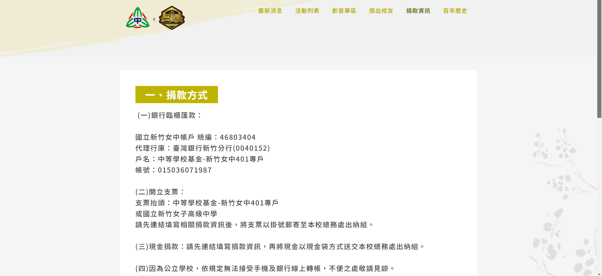 深感榮幸做到新竹女中百年校慶的案子,從設計到網站建置都由我們做規劃,主機則是放回到學校,身為新竹人沒有人不知女中,當時學測大家可是要擠破頭衝進他們的學校,讓我回想起當時學生時期,我都是跟全校前3名還有前10名當好友,我個人不像朋友成績優秀,她們都是推甄上了竹女[全校第1名]、另一個自己考上竹女或前10名朋友考上竹北,自己則是跑去念光復中學旗艦班,但也學了一技之長出來,當時文書的能力就是在那邊歷練出來,原本以為輸在起點,但很榮幸的做到竹女的網站,讓我覺得好像跟上了朋友們…..對我來說這個網站蠻有意義,感謝承辦人找上我,讓我圓滿一個夢。